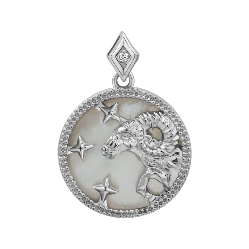 Women's silver pendant, pendant with mother-of-pearl inserts and cubic zirconia