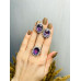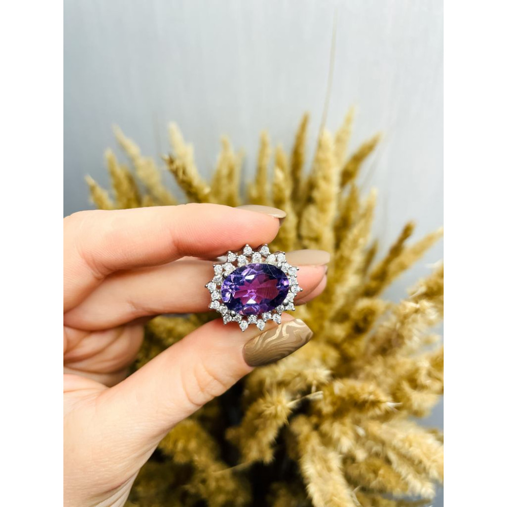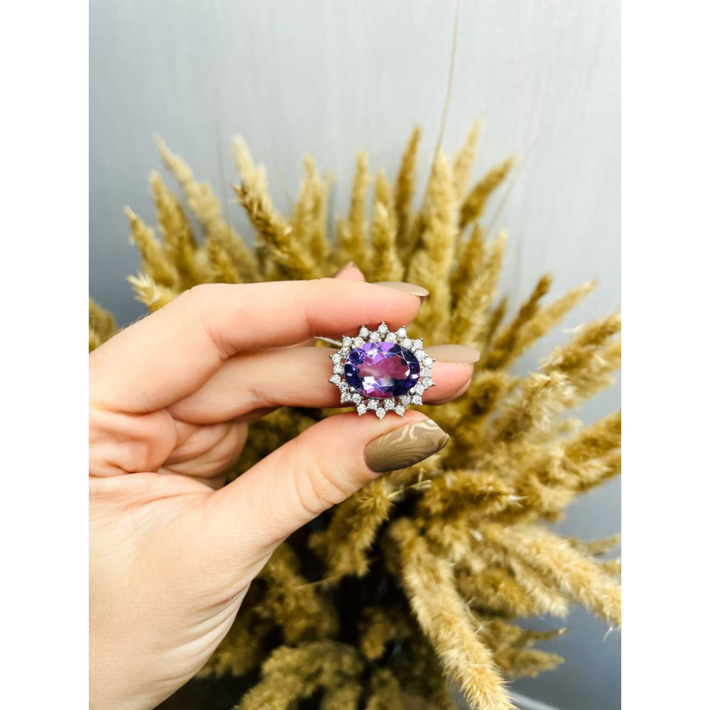 Women's silver ring with amethyst inserts and cubic zirconia