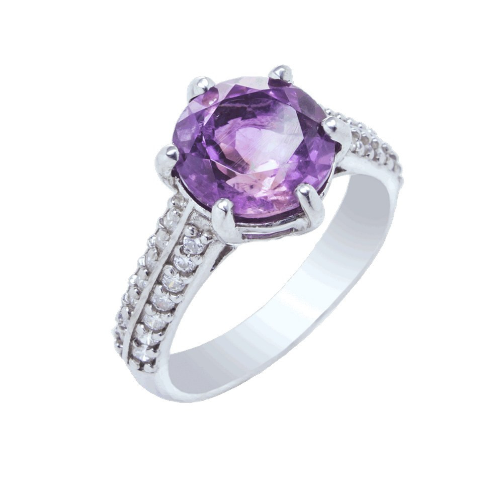 Women's silver ring with insets of amethyst and cubic zirconia