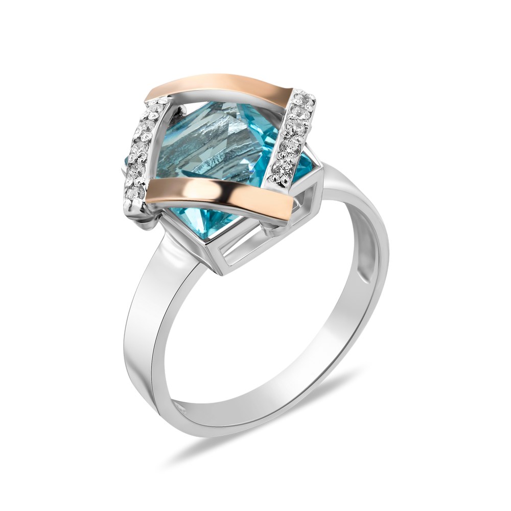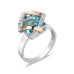 Женское серебряное кольцо с голубой фианитом, вес украшения: 4.14 грамм, размеры вставок в мм: фианит 9х9 квадрат, фианит 1,25 круг
