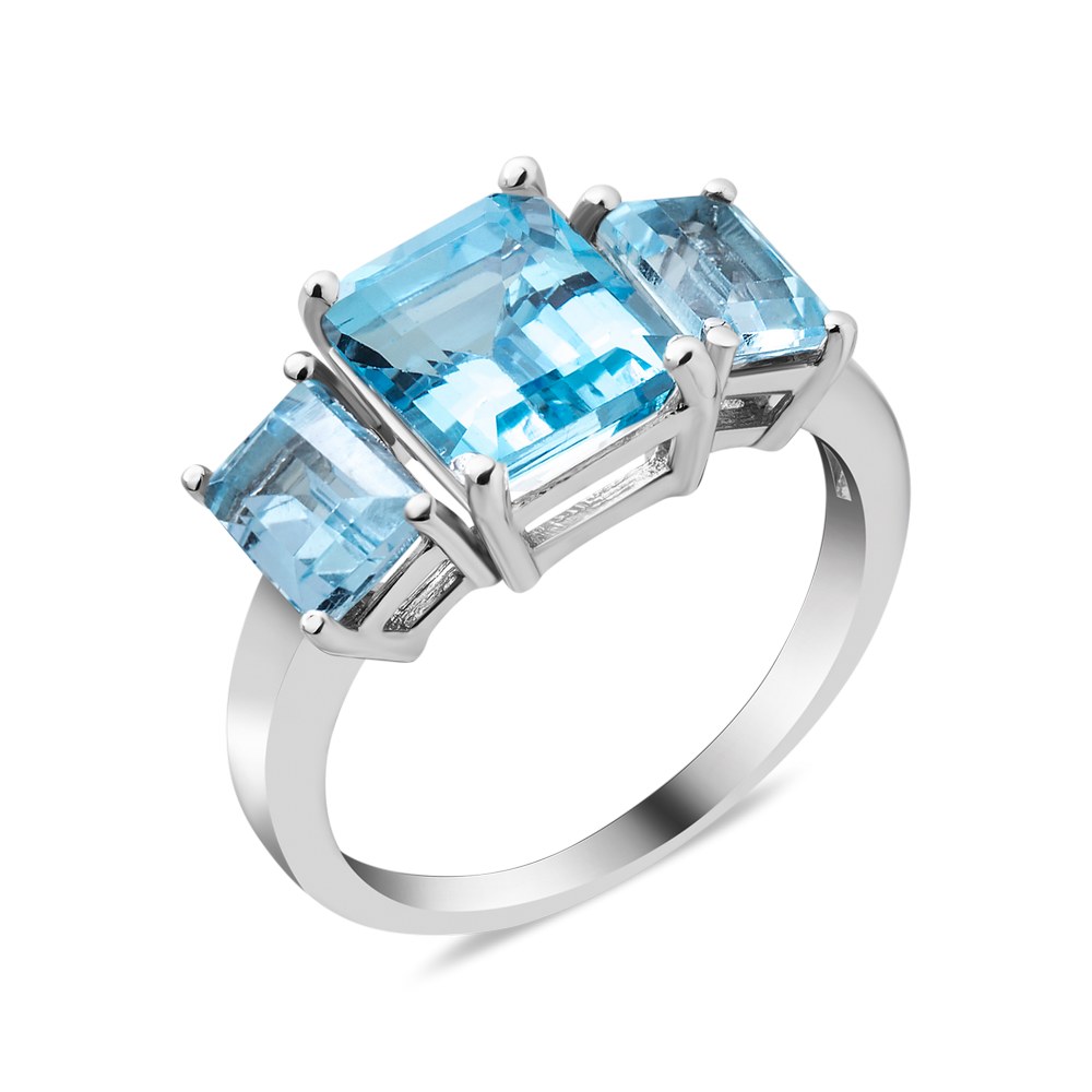 Женское серебряное кольцо с натуральным голубой скай топазом, вес украшения: 4.43 грамм, размеры вставок в мм: скай топаз 8х10 октагон, скай топаз 5х7 октагон
