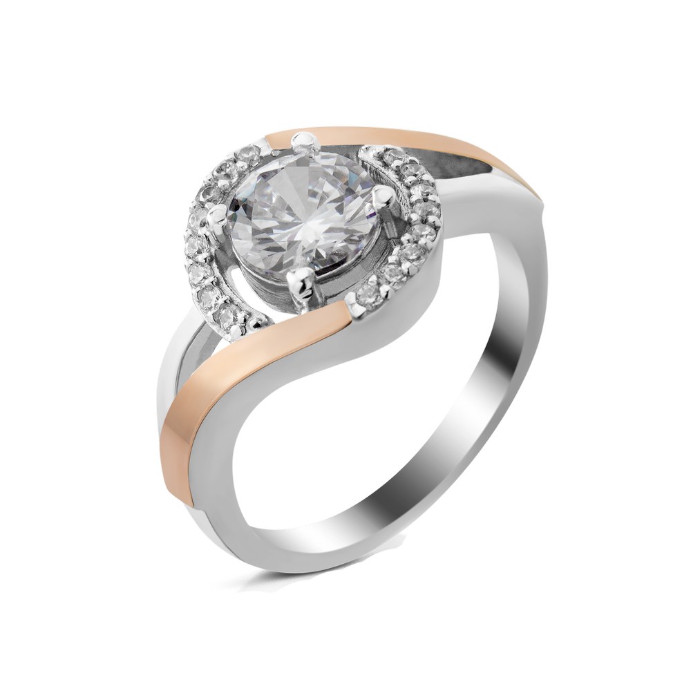Женское серебряное кольцо со вставками золота и куб. циркония