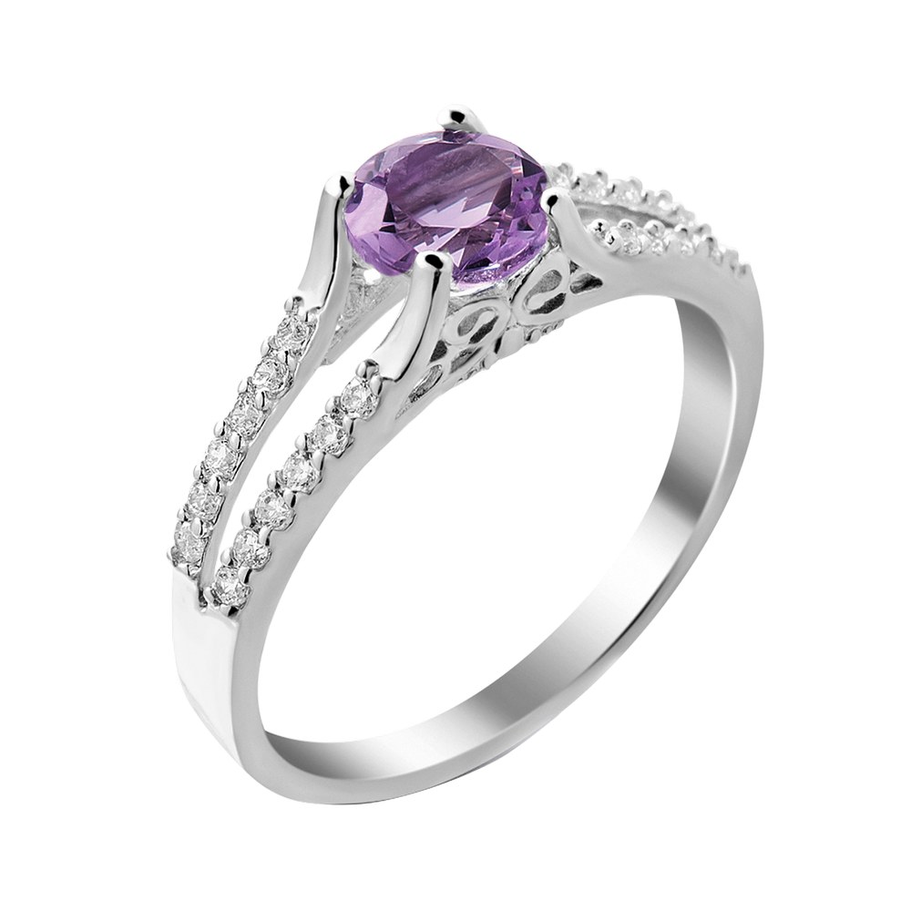 Женское серебряное кольцо со вставками аметиста и фианитами