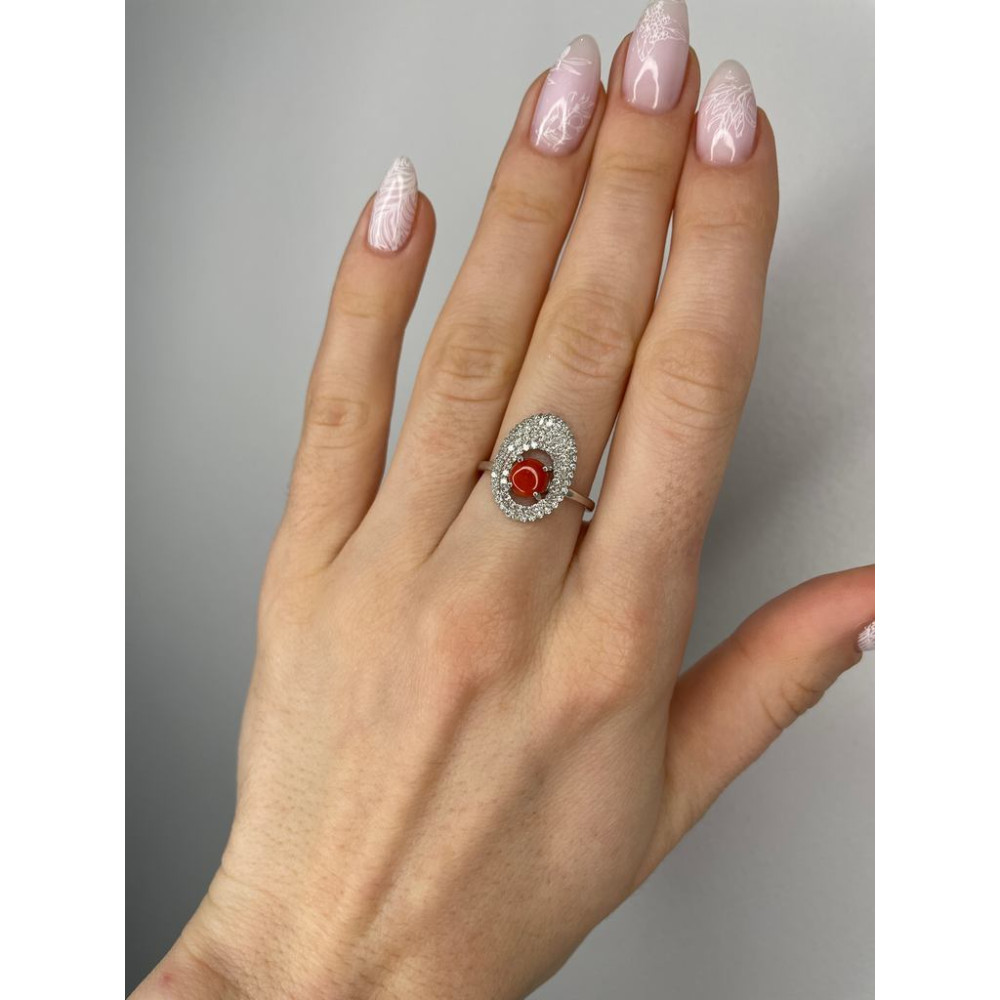 Description Срібна каблучка з коралом та фіанітом 163-4710