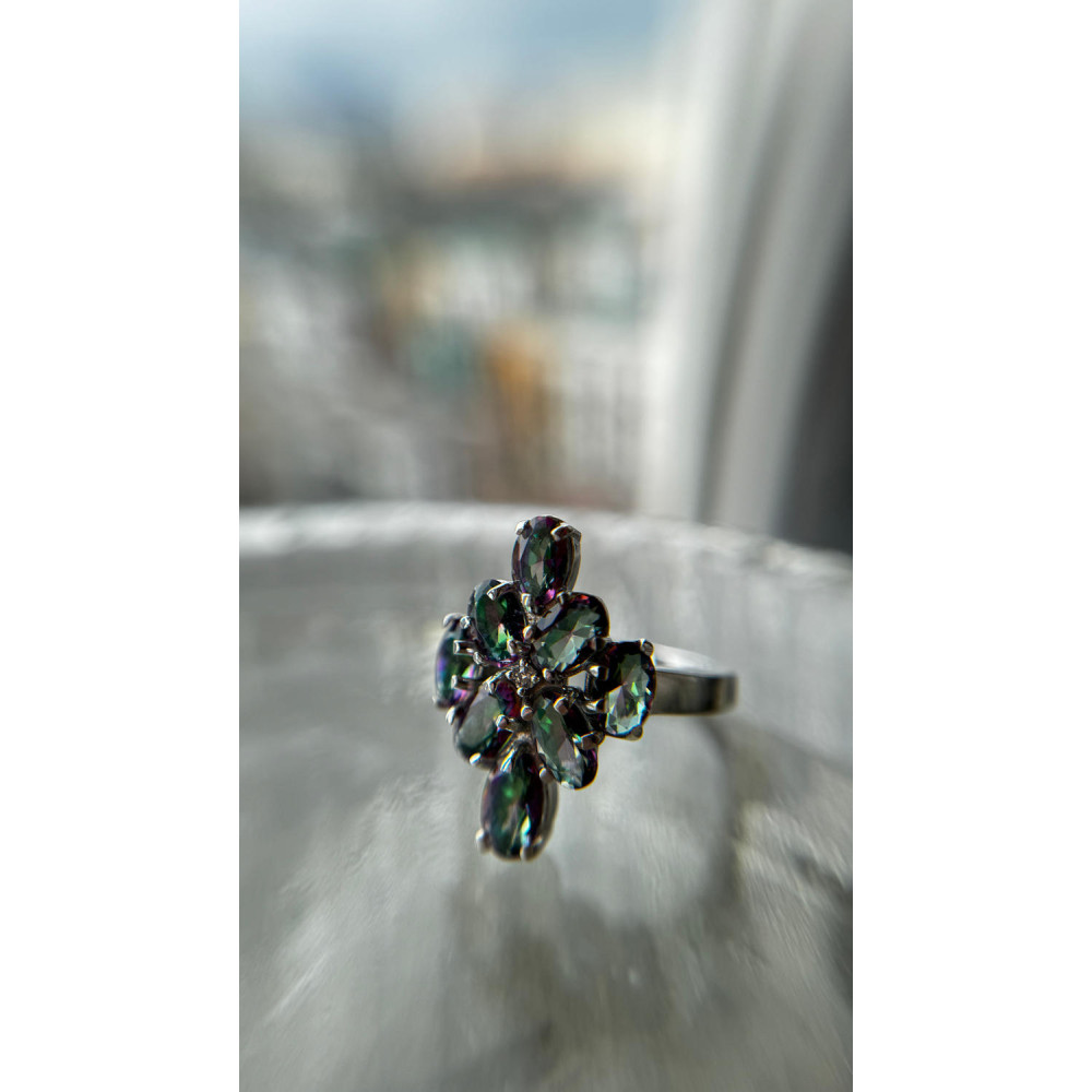 Жіноча срібна каблучка з вставками нано містіка і фіанітів