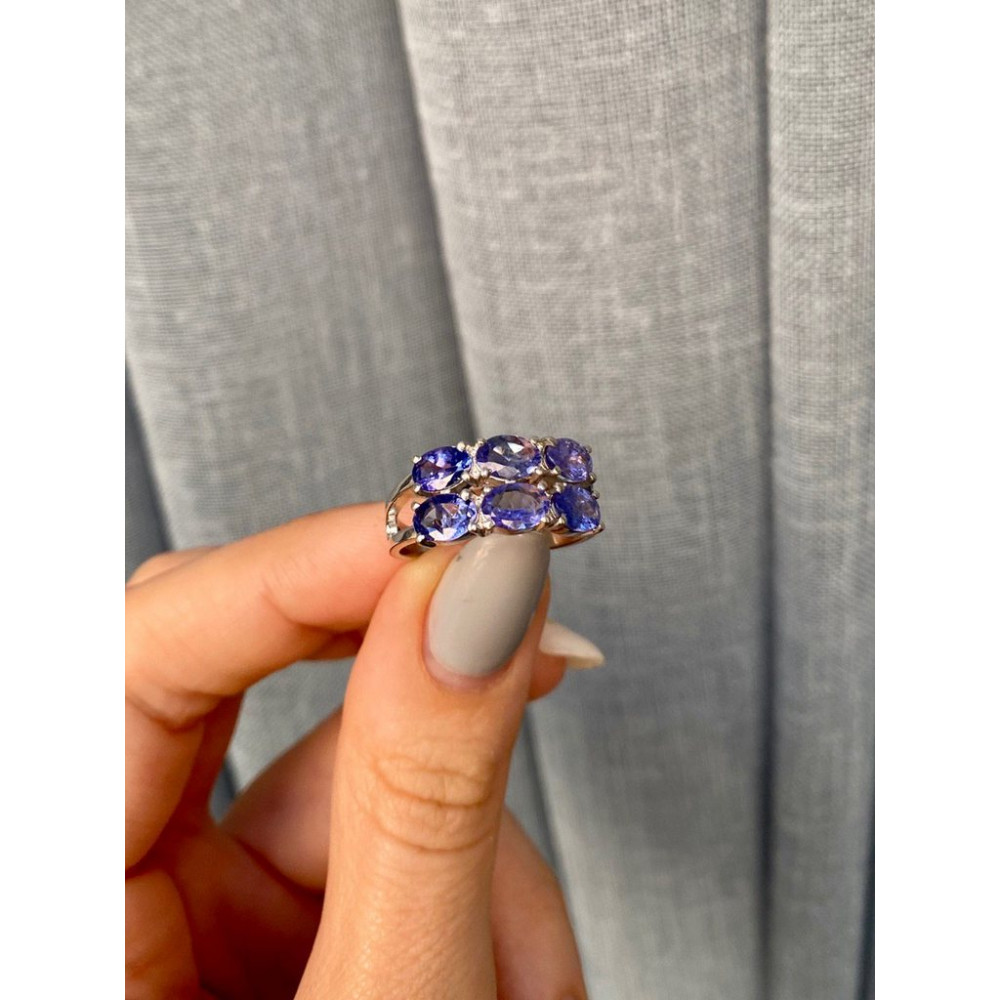 Жіноча срібна каблучка з вставками танзаніту