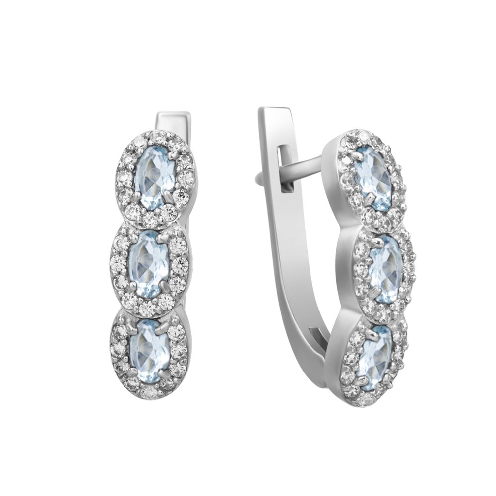 Women's silver earrings with accents of aquamarine and cubic zirconia