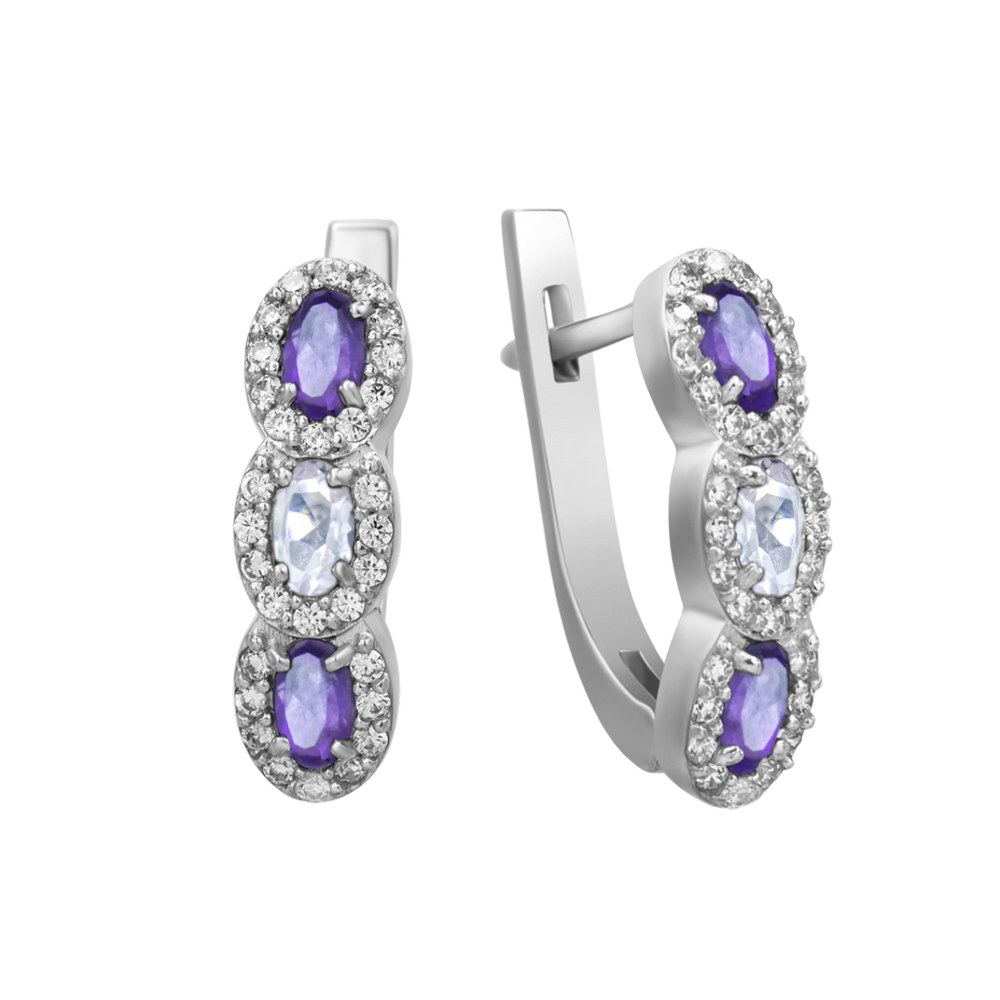 Women's silver earrings with inlays of Brazilian amethyst, morganite and cubic zirconia