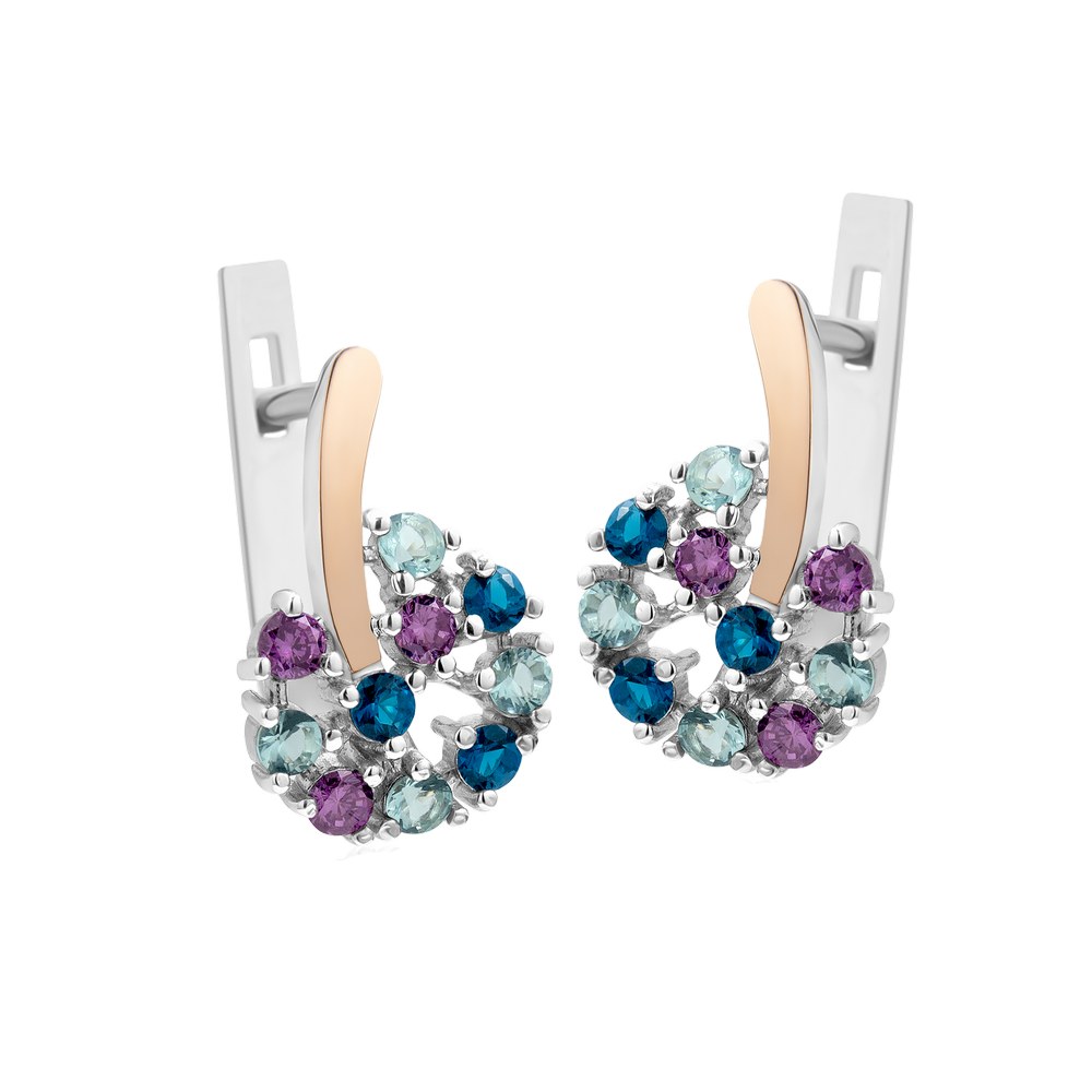 Женские серебряные сережки со вставками золота и фианитов