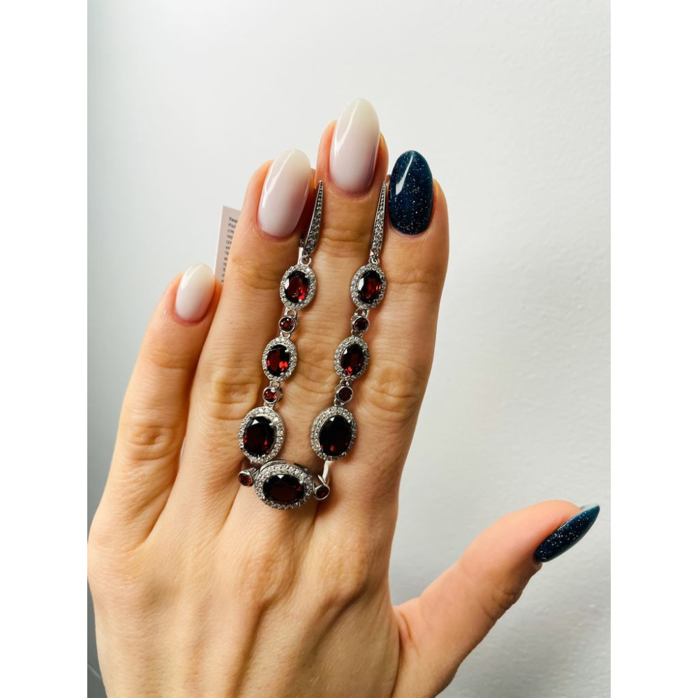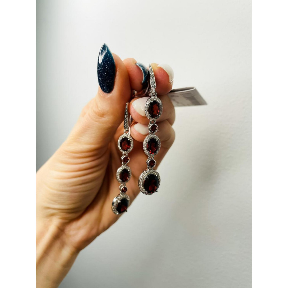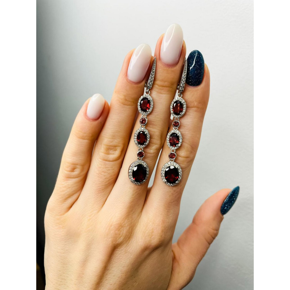 Женские серебряные серьги с натуральным красным гранатом, вес украшения: 8.57 грамм, размеры вставок в мм: гранат 7х9 овал, гранат 5х7 овал, гранат 3 круг, фианит 1,25 круг, фианит 1,1 круг