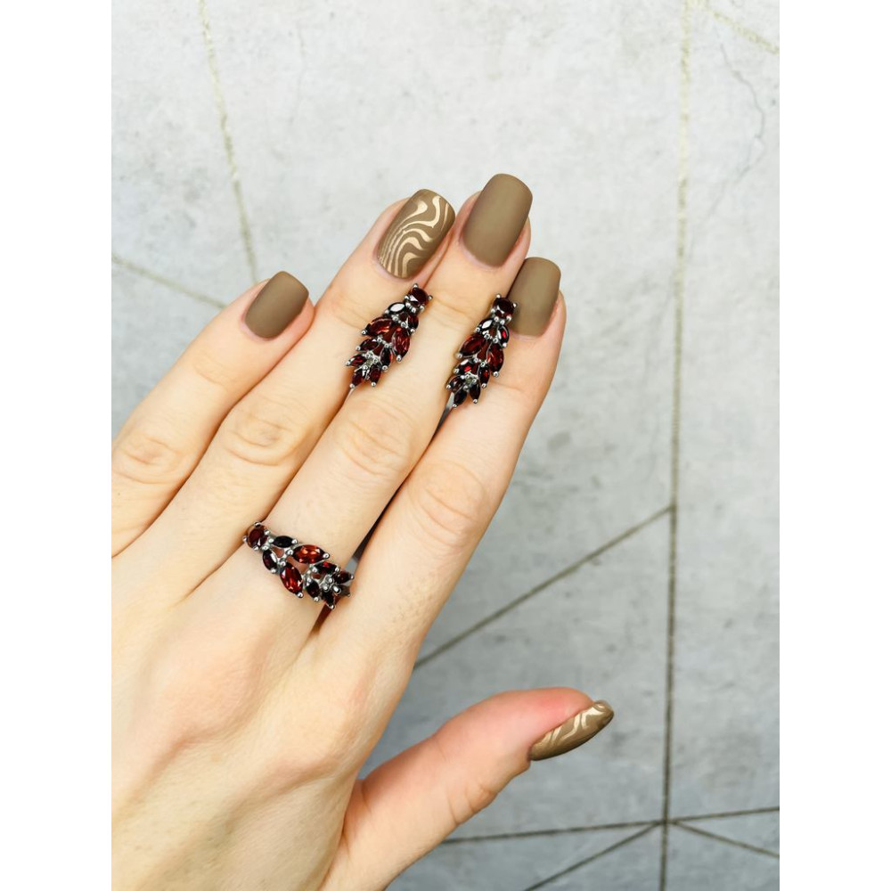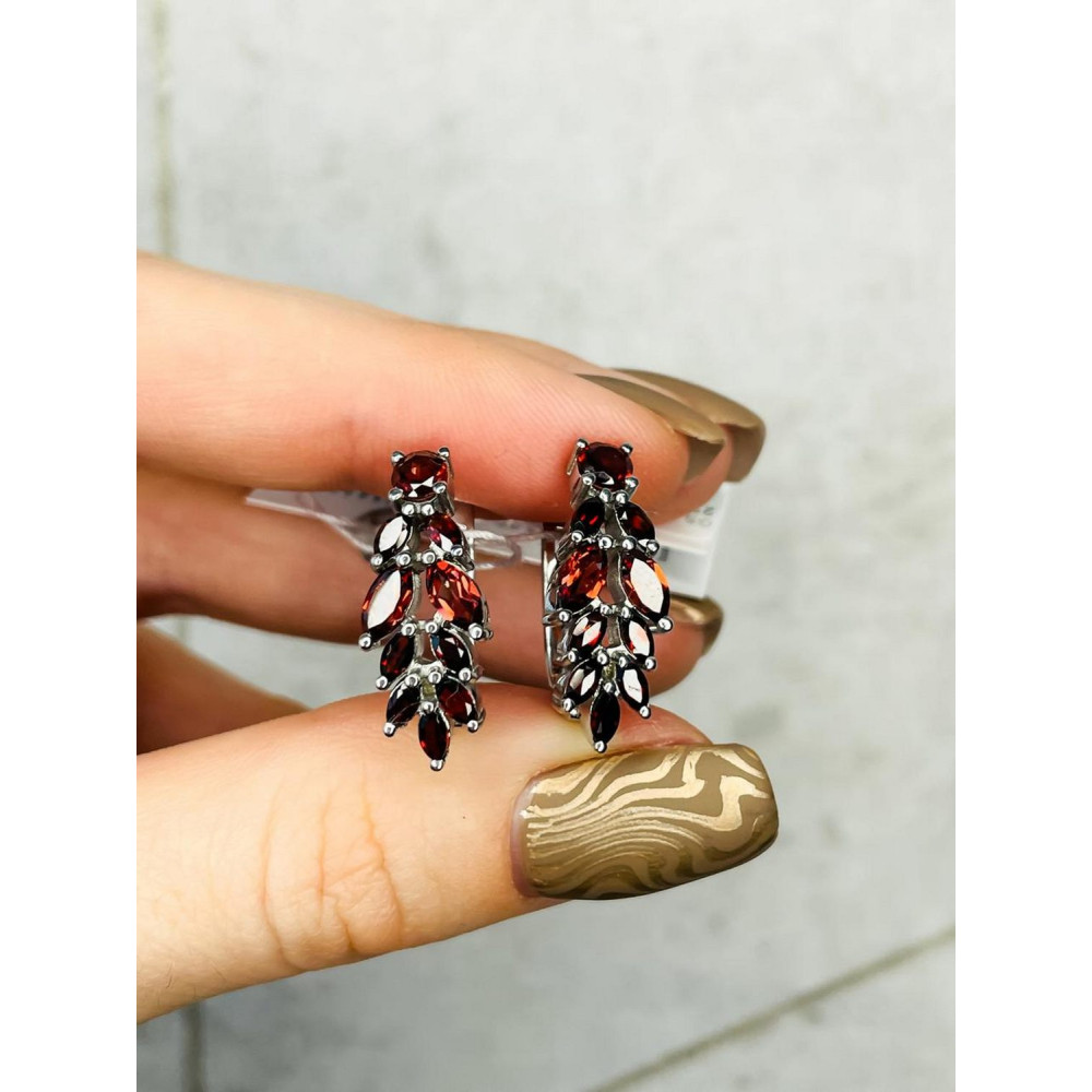 Женские серебряные серьги с натуральным красным гранатом, вес украшения: 5.5 грамм, размеры вставок в мм: гранат 3х6 маркиз, гранат 2х4 маркиз, гранат 4 круг