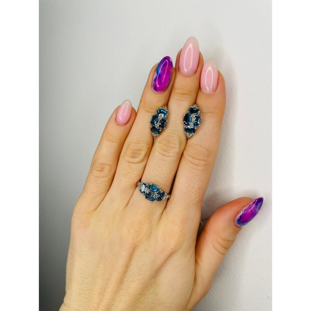 Description Серебряные серьги с натуральным Лондон топазом 032-3310