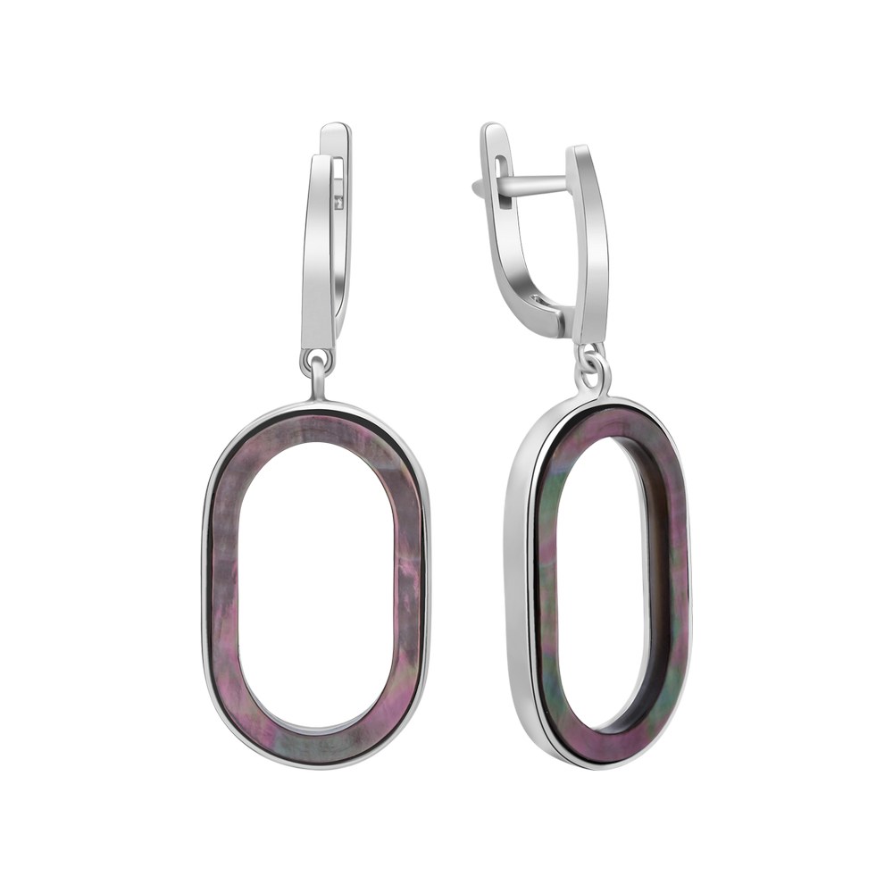 Women's Silver Earrings with Black Mother-of-pearl Inserts