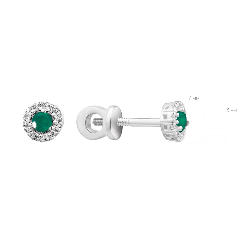 Женские серебряные серьги со вставками зеленого агата и фианитами