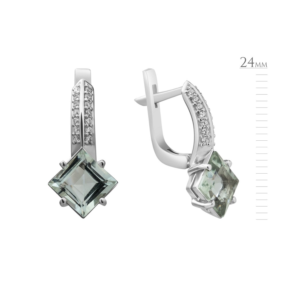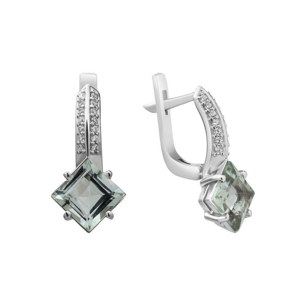 Женские серебряные серьги со вставками зеленого кварца и куб. циркония