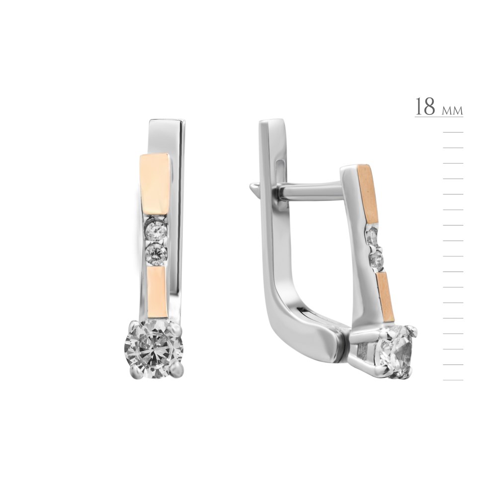 Women's silver earrings with gold inserts and cubic zirconium