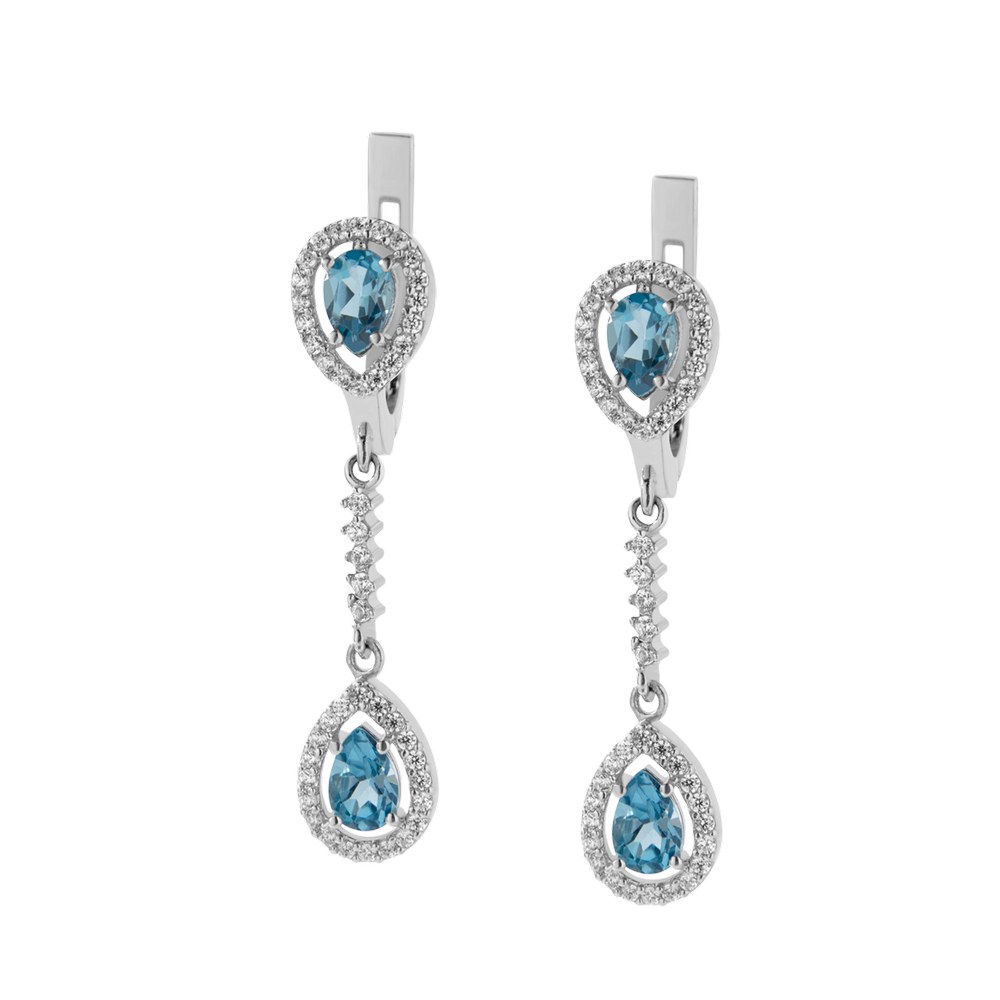 Main attributes Silver earrings with inlays sapphire and cubic Zirconia 088-3010