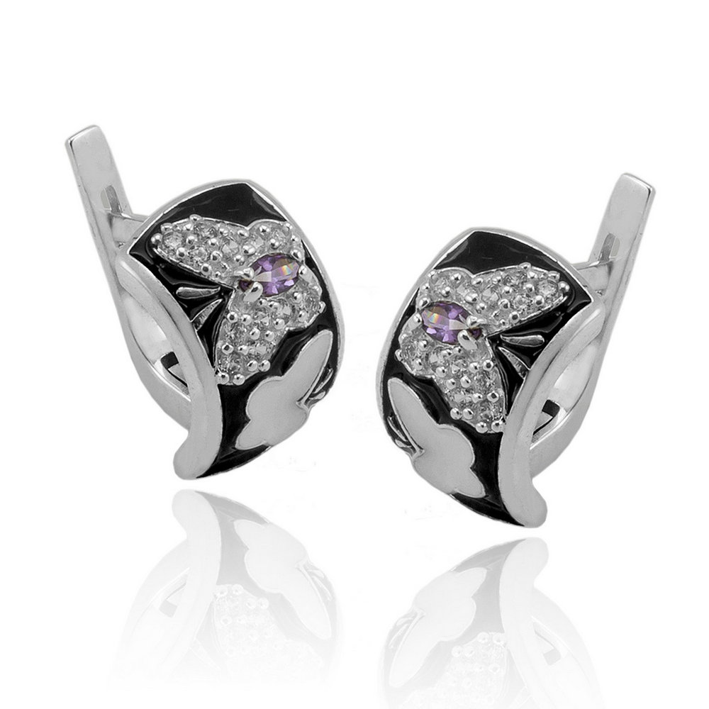 Silver earrings with inlays of cubic Zirconia and enamel