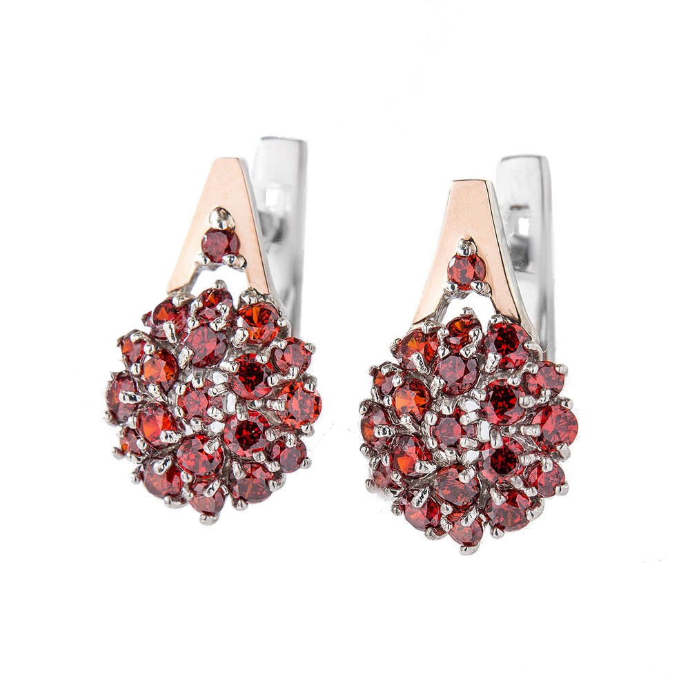 Main attributes Silver earrings with inlays of gold and zirconium Brusnichka-41