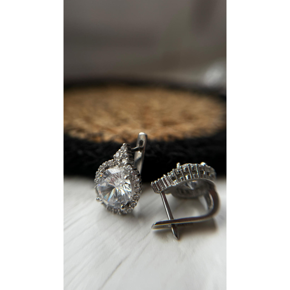 Description Срібні сережки з фіанітом 048CZ-10