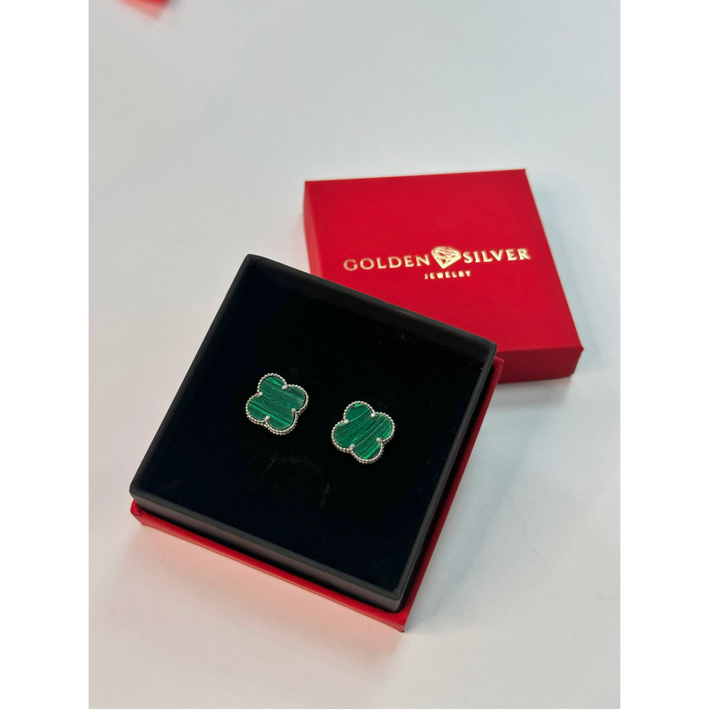 Жіночі срібні сережки зі вставками малахіту.