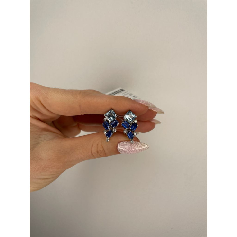 Main attributes Срібні сережки з скай топазом та кіанітом 143-393710