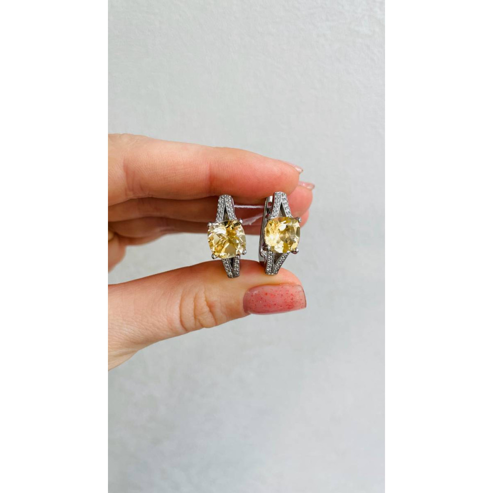 Description Срібні сережки з цитрином та фіанітом 089-5410
