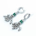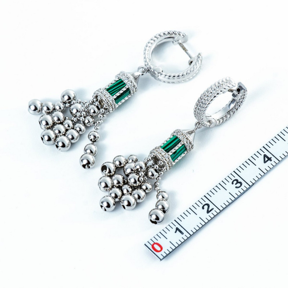Жіночі срібні сережки зі вставками малахітів та фіанітів.