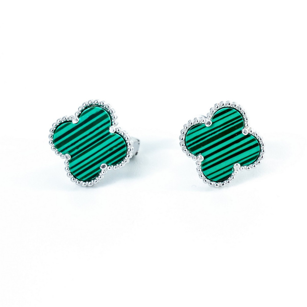 Main attributes Срібні сережки зі вставками малахіту 02-00021-79