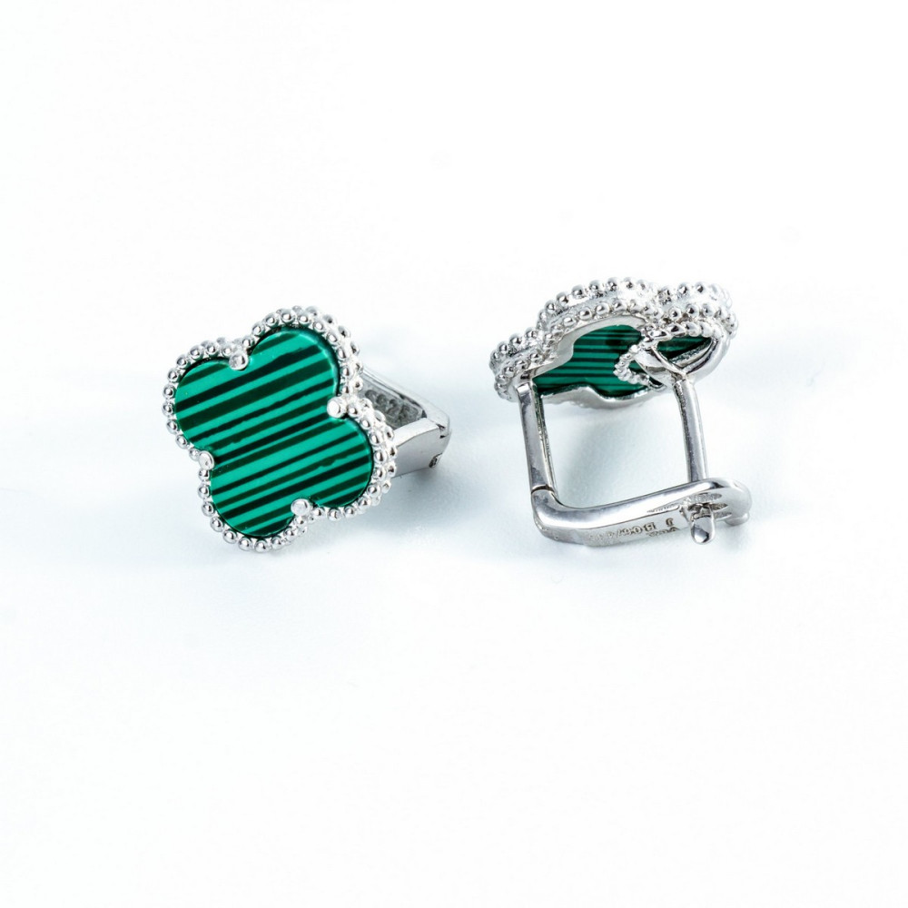 Description Срібні сережки зі вставками малахіту 02-00021-79