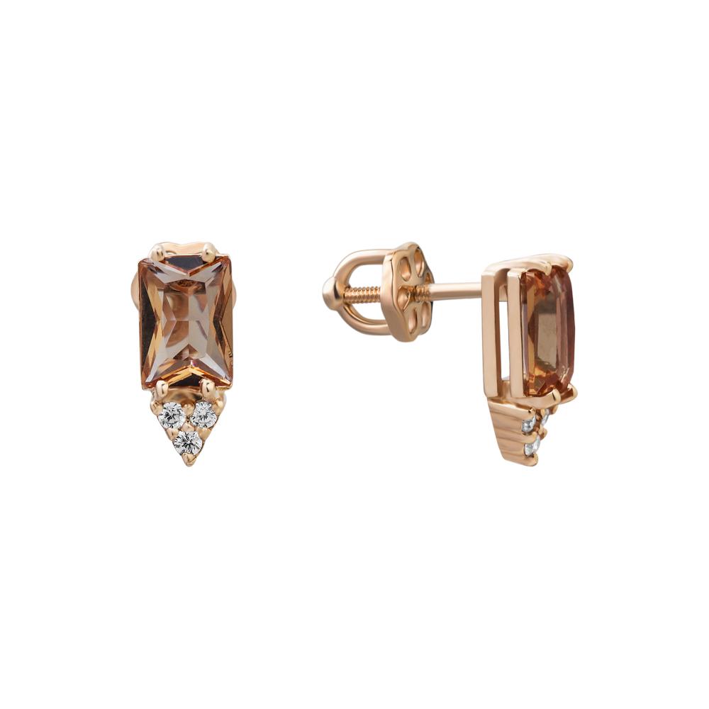 Золотые серьги с топазом и фианитами.