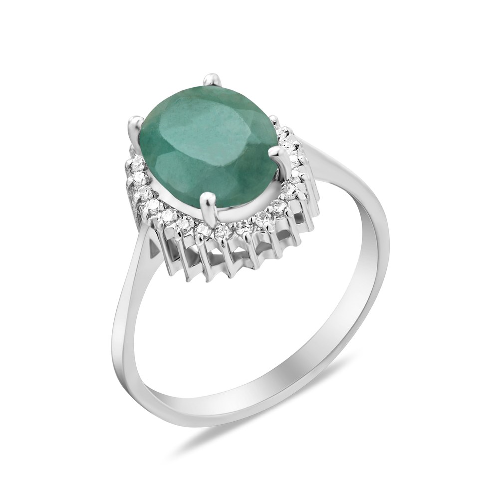 Женское серебряное кольцо со вставками изумруда и фианитами