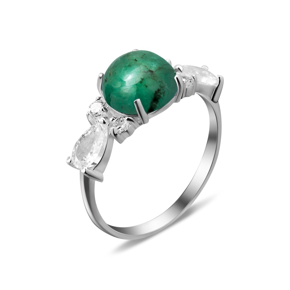 Женское серебряное кольцо со вставками изумрудов и фианитами