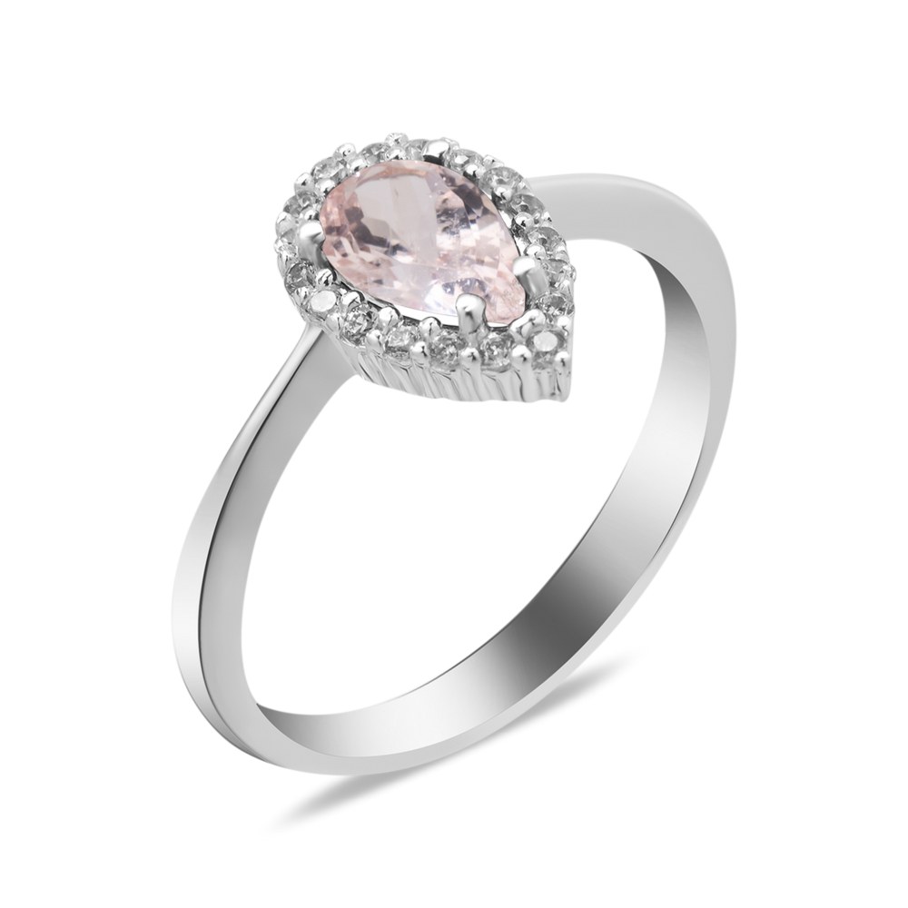 Жіноча срібна каблучка з морганіти та фіанітами
