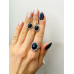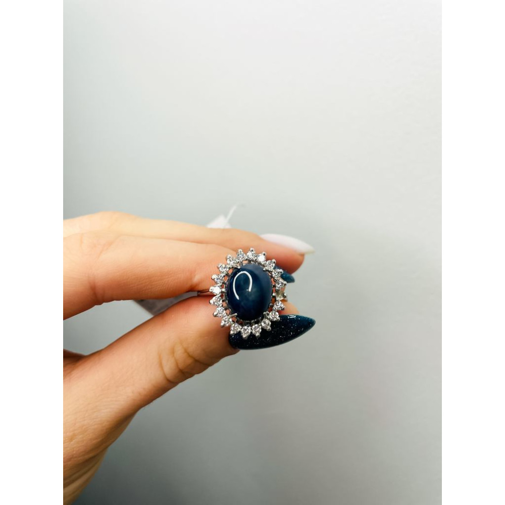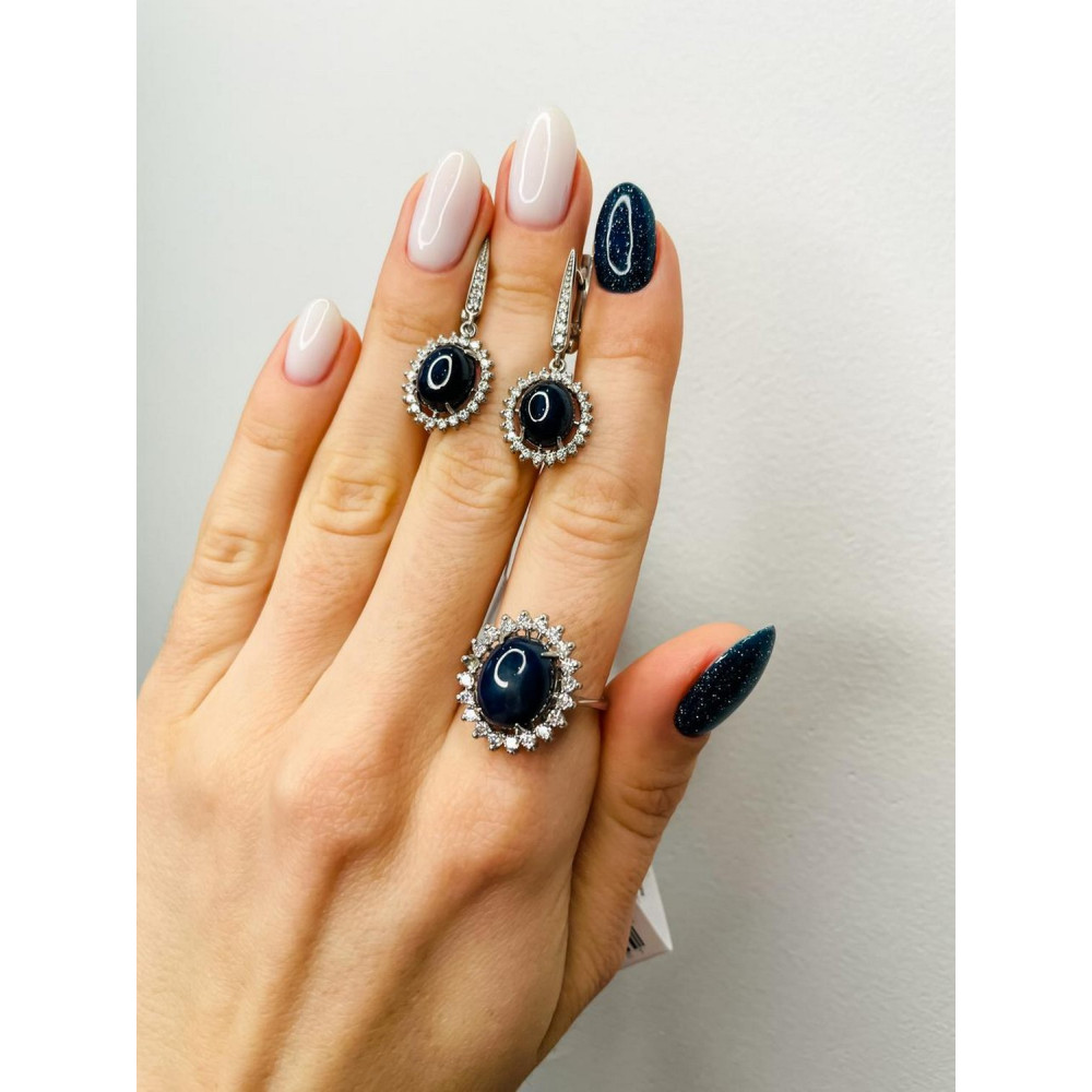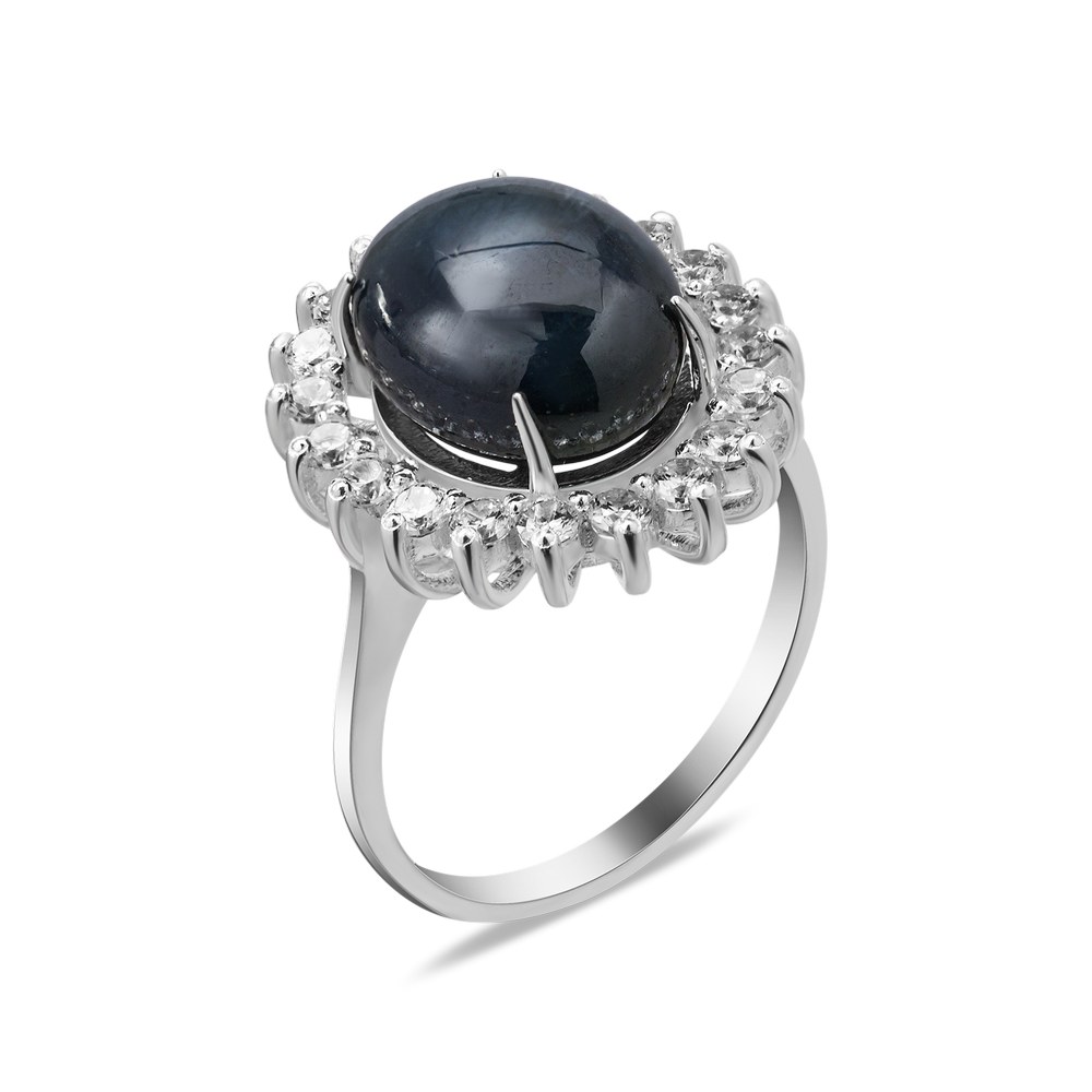 Женское серебряное кольцо со вставками звездного сапфира и фианитами