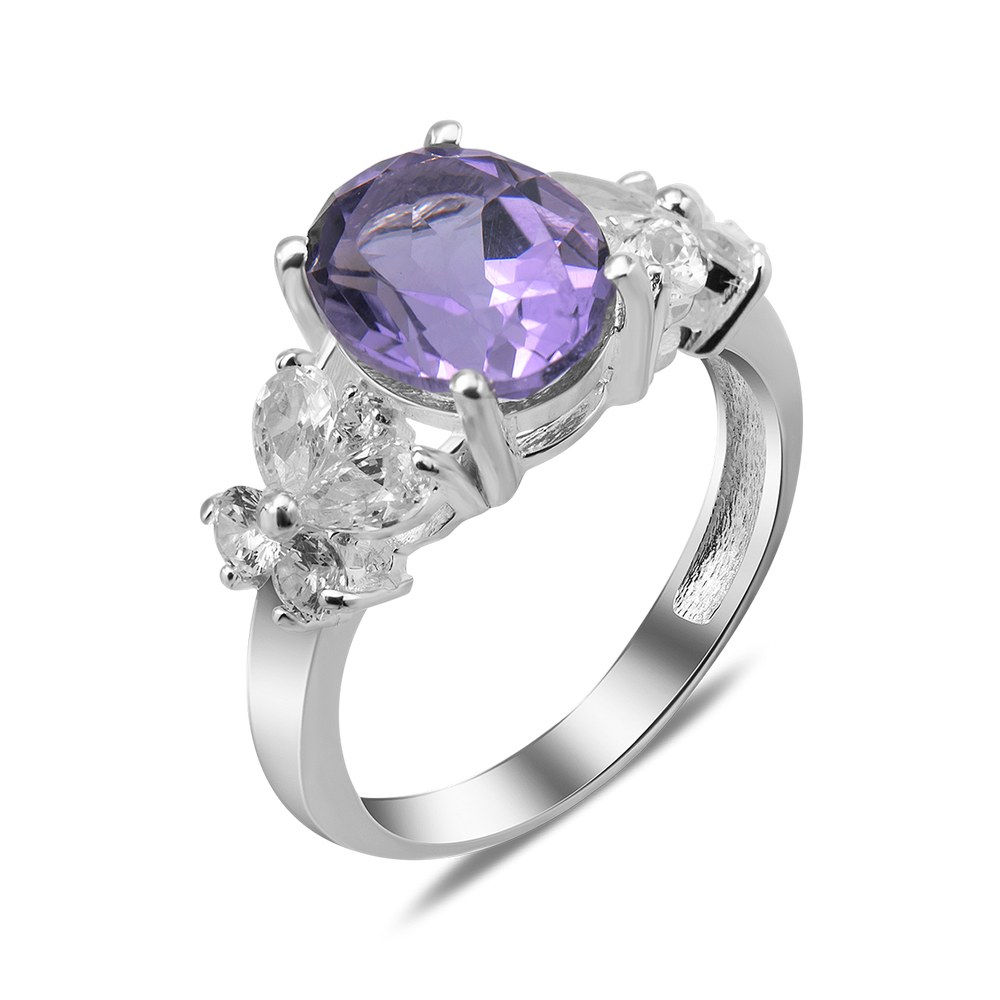 Жіноча срібна каблучка з вставками аметисту и фианитами