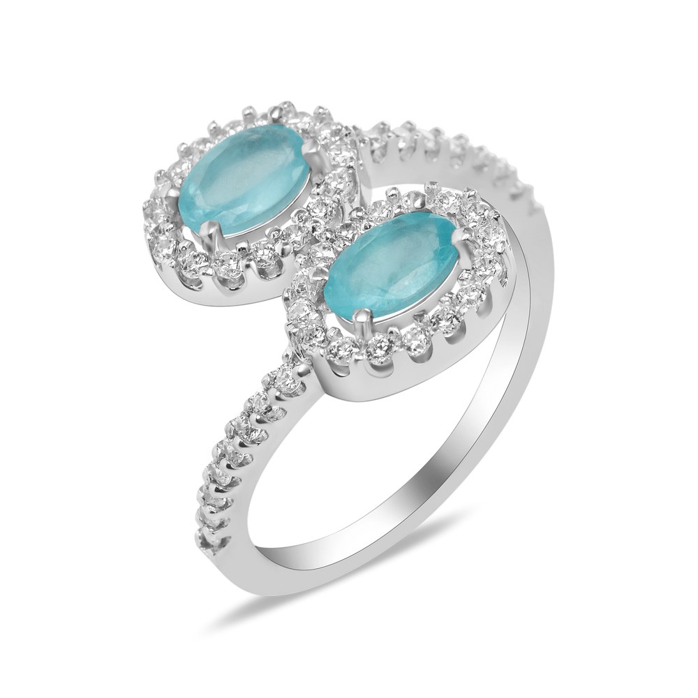 Жіноча срібна каблучка з вставками апатиту і куб. цирконію