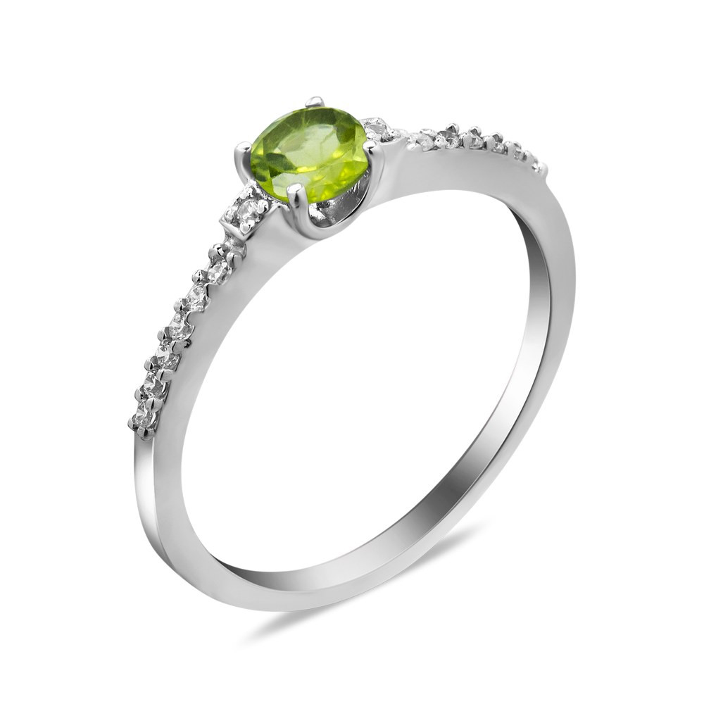 Жіноча срібна каблучка з вставками перидота і куб. цирконію