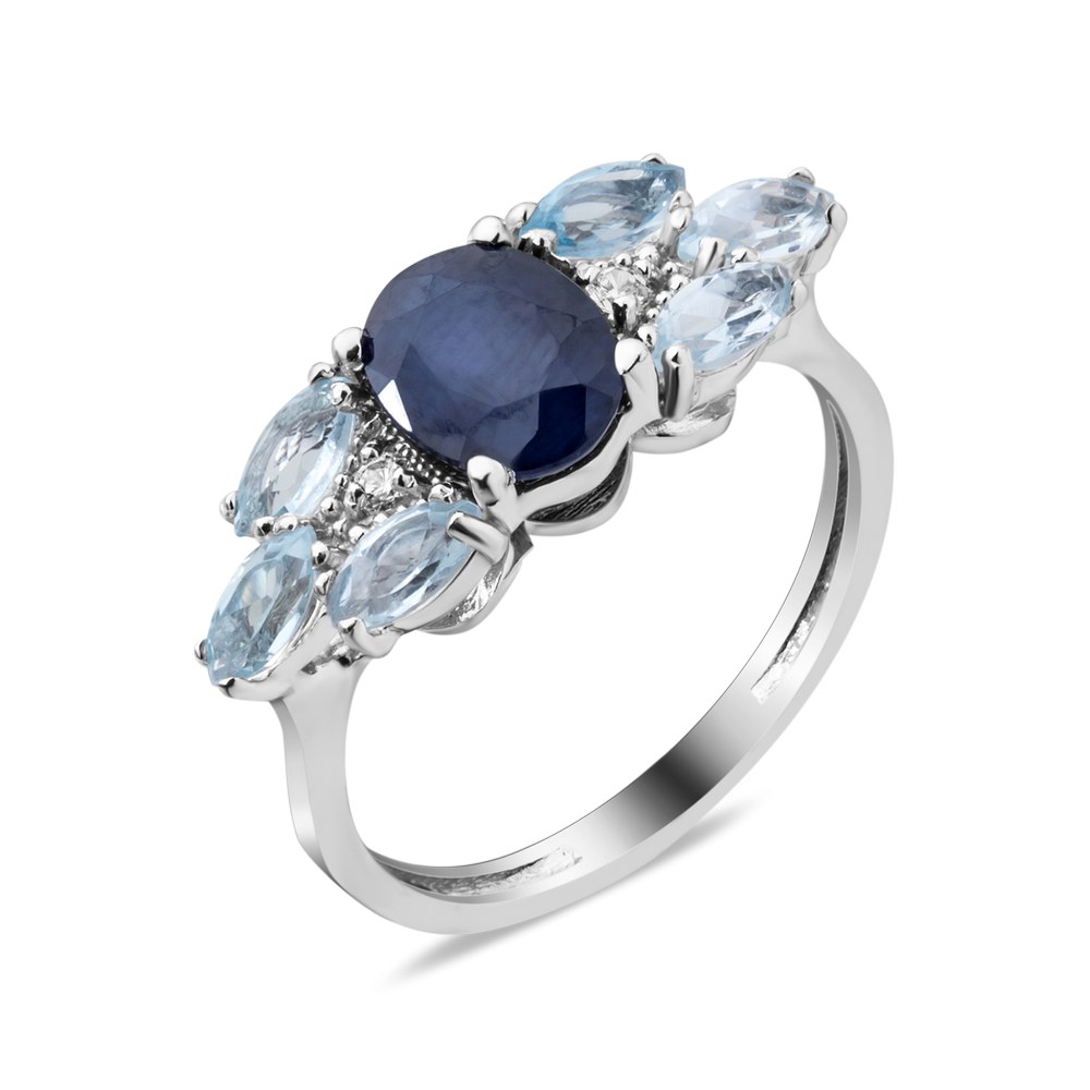 сапфир 6х8 "овал" / ский топаз 2,5х5 "маркиз" / фианит 1,75 "кругло"