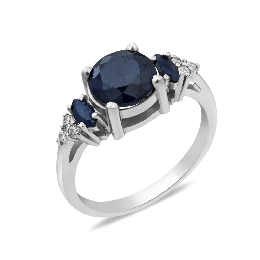Женское серебряное кольцо со вставками сапфира и куб. циркония