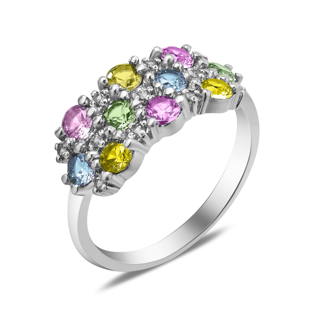 Жіноча срібна каблучка з вставками турмалину и фианитов