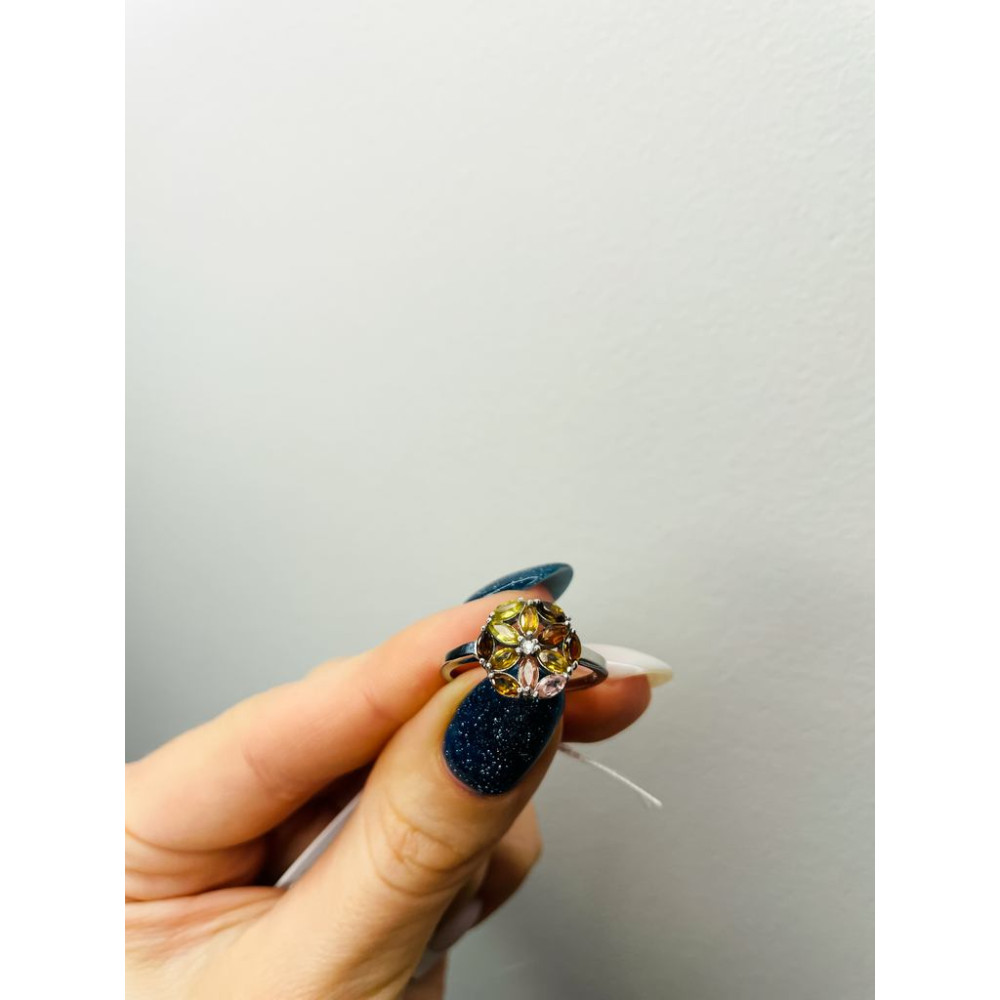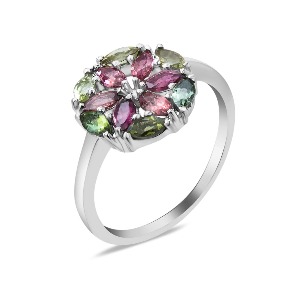 Женское серебряное кольцо со вставками турмалинов и фианитов