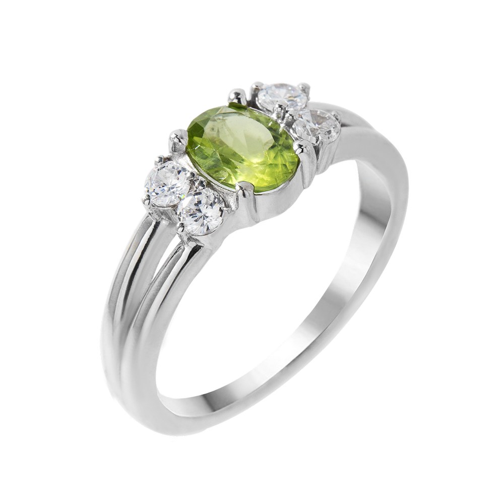 Женское серебряное кольцо со вставками перидота и фианита