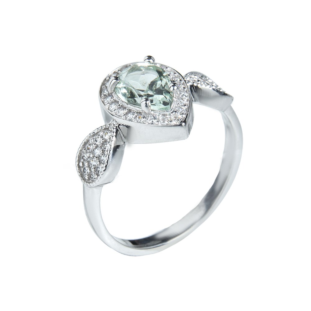 зеленый кварц 6х9 "груша"/фианит 1,25 "круглая"