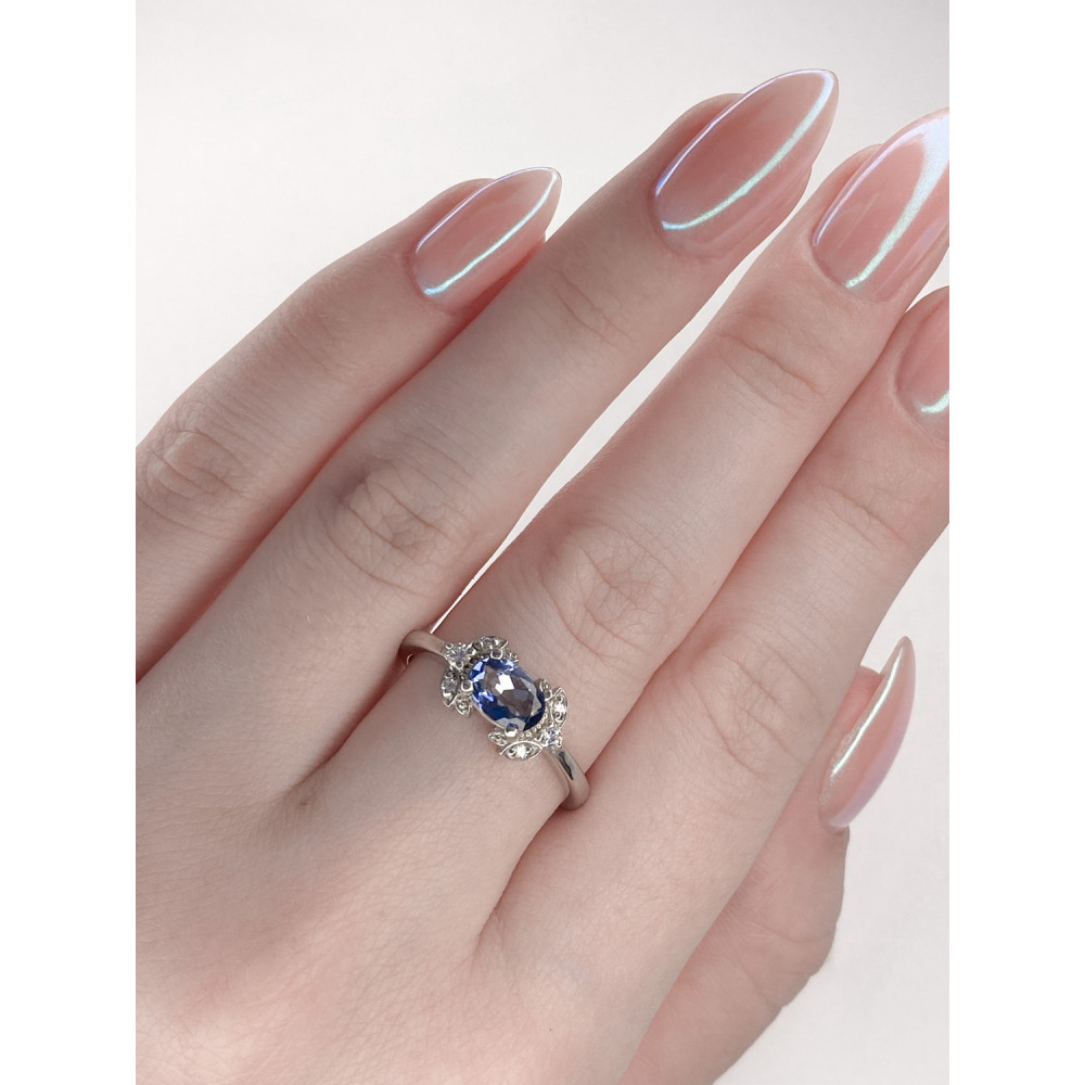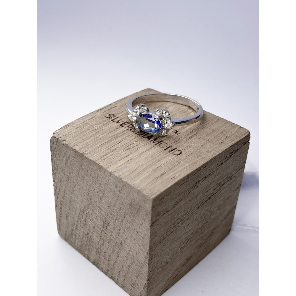 Жіноча срібна каблучка зі вставками блакитного кварцу і куб. цирконію