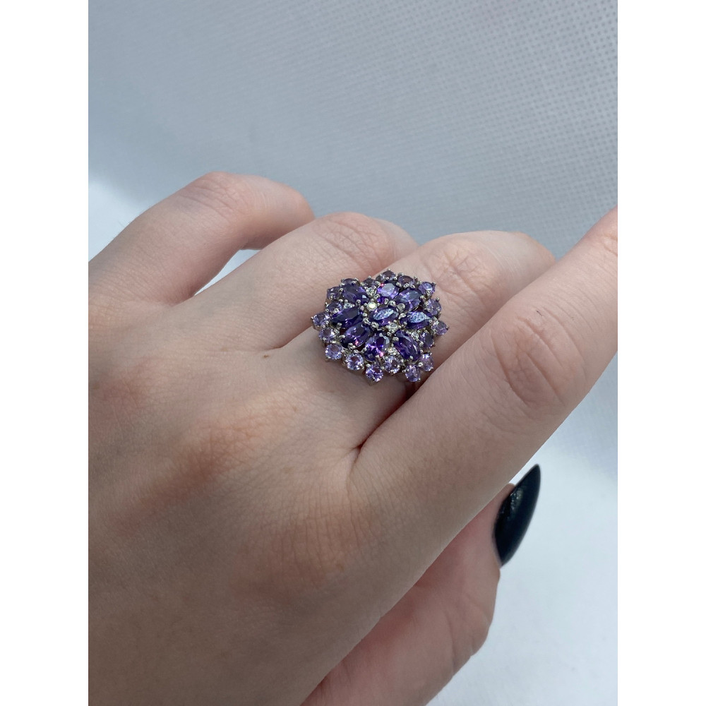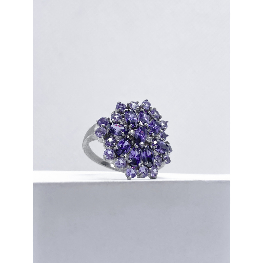 Жіноча срібна каблучка зі вставками нано олександритів і фіанітів