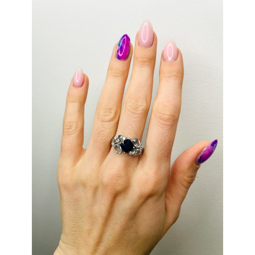 Жіноча срібна каблучка з вставками сапфіру, скай топазів і фіанітів