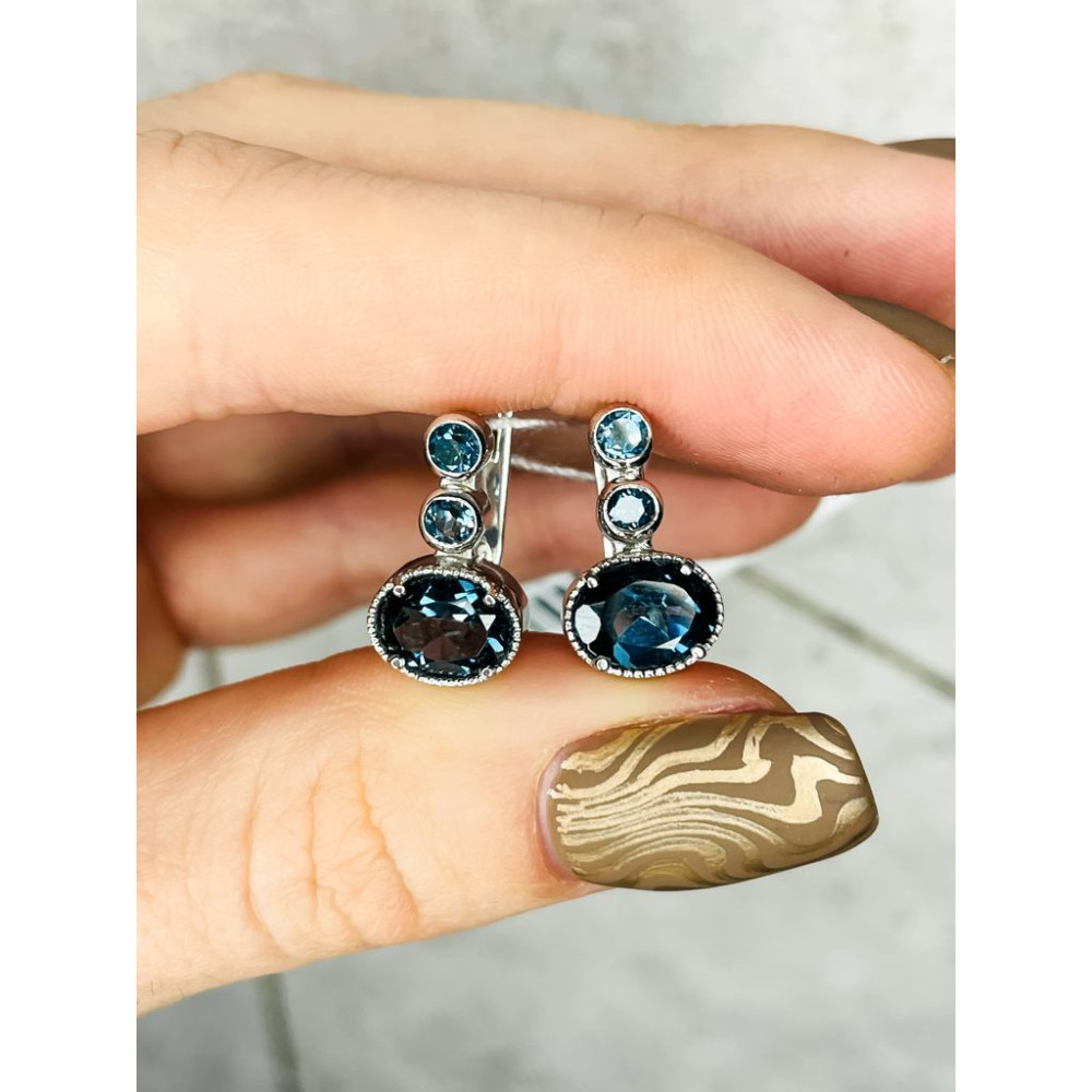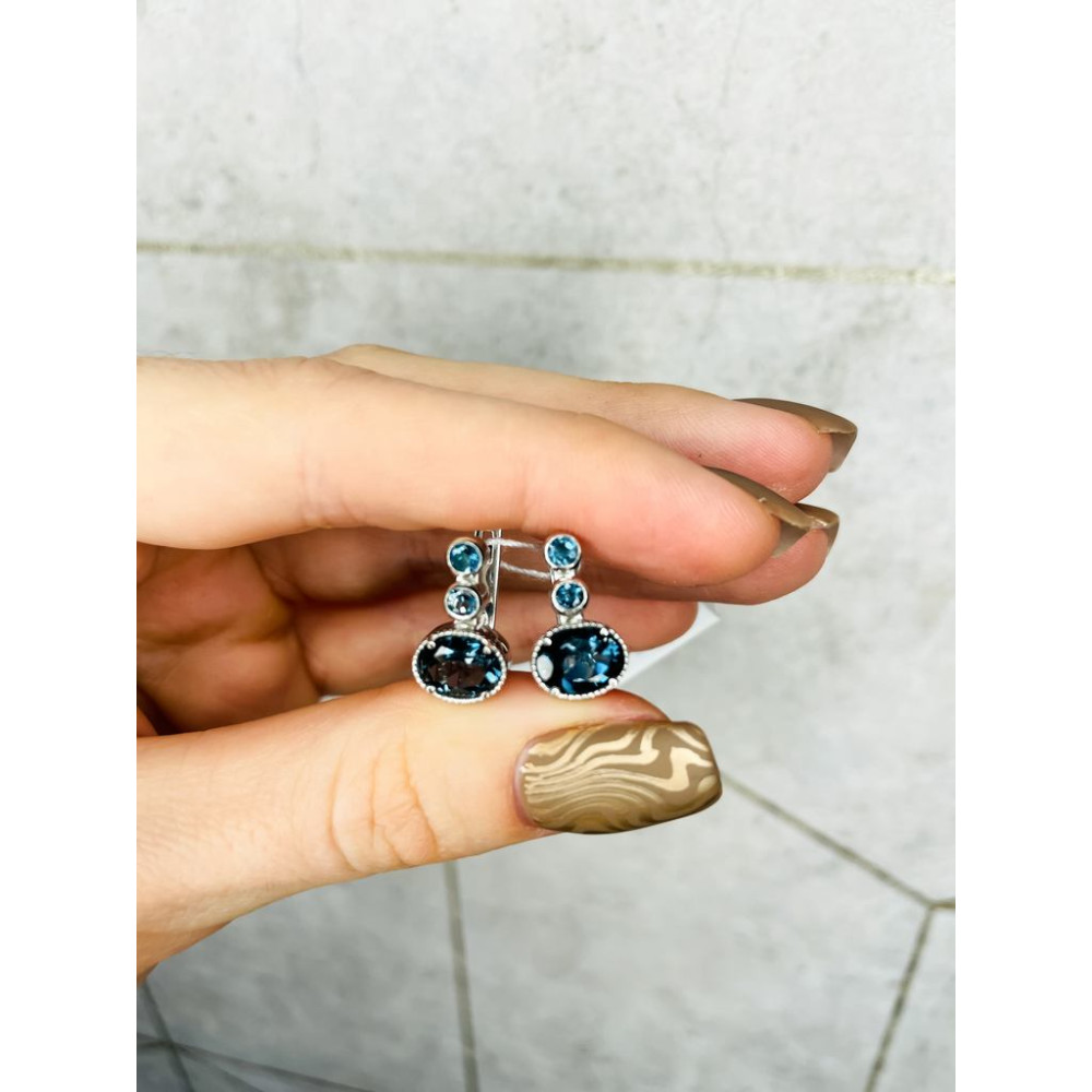 Описание Серебряные серьги с натуральным Лондон топазом 136-33