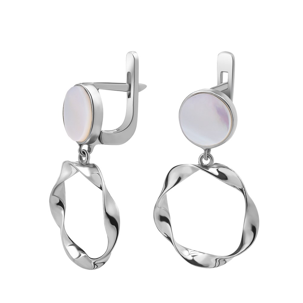 Женские серебряные серьги со вставками белого перламутра