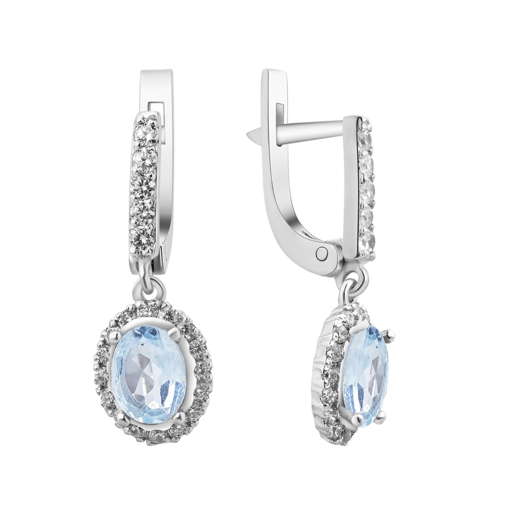 Женские серебряные сережки со вставками скай топазу и фианитами